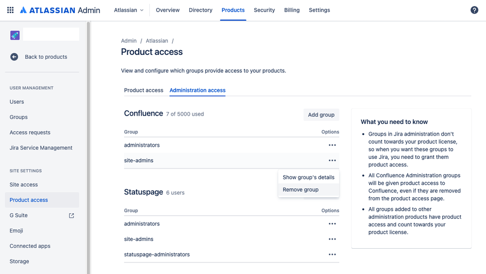 Go to the Cog icon > User management > Product access > Administration access.