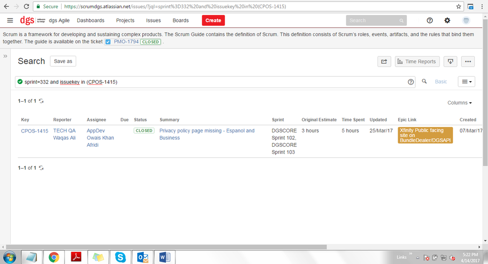 Can you please guide if it is possible to have sprint wise time spent break down for an issue that is included in more than one sprint like in CPOS-1415 work-logging is done in two sprints,