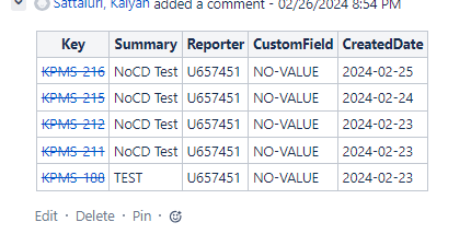 ||*Key*||||*Summary*||||*Reporter*||||*CustomField*||||*CreatedDate*||