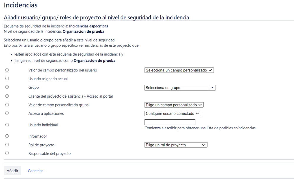 Básicamente, quiero restringir a una persona que solo vea issue de una organización en específico.