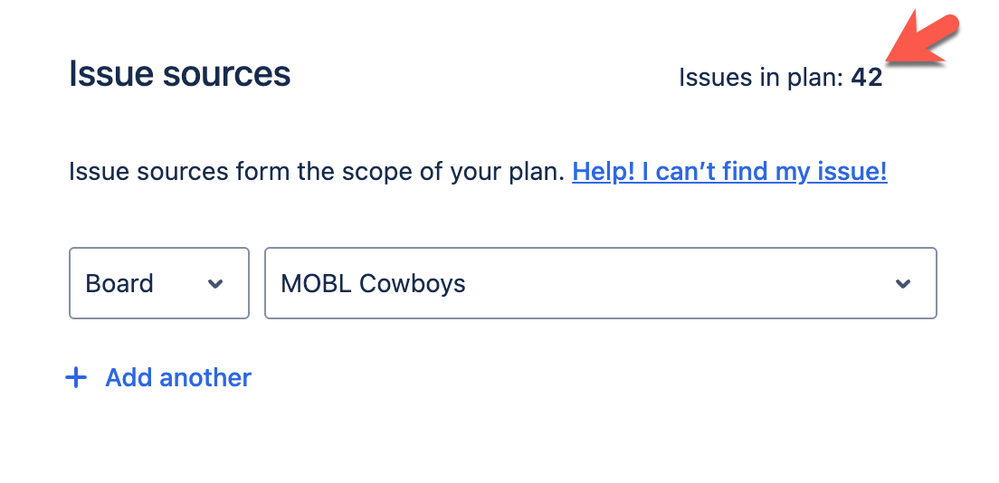 Plans have an upper limit of 5,000 issues on the plan. This was previously displayed on the Create Plan screen and was very useful. I’m not sure why it’s not there any longer, but I have a workaround! When creating your plan, just add one issue source. Then, go to the plan settings -> Issue sources to add the rest. That will let you see the number of issues being added to the plan:
