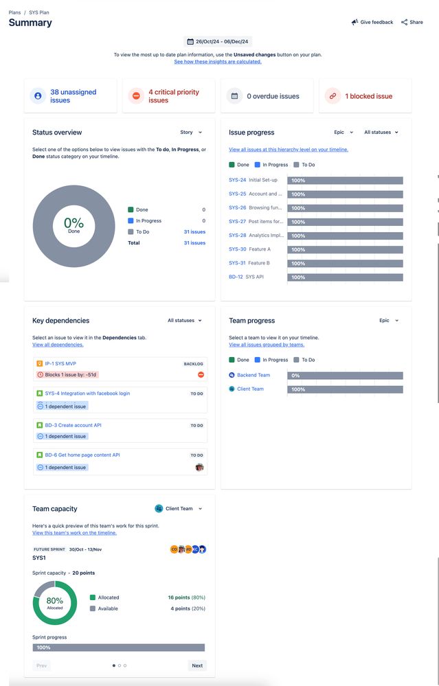 If you have scrum teams, there are a few things you’ll need to do in order to get your team’s sprints and capacity added to the board so you get the following in your view: