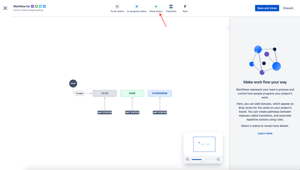 2. Click on the add a “Done status” button on the top menu: