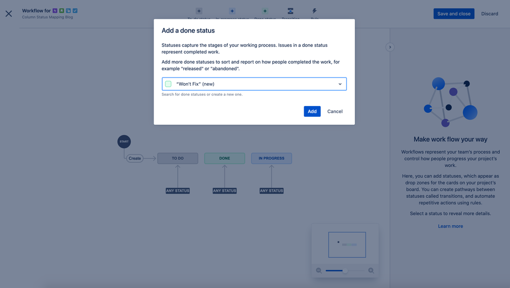 As your team triages incoming issues, you may come across issues that you decide you “Won’t Fix” due to various reasons (e.g., a reported bug is actually expected behavior). Now, we’ve allowed you to add additional Done statuses via the Workflow Editor: