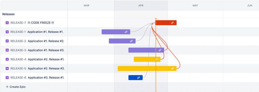 Let's start with the most important aspect of an effective visualisation: a bird’s-eye view of all releases. As you remember, releases are stored in a separate Release Center as epics, and the most convenient way to display them is using Jira Software roadmaps: