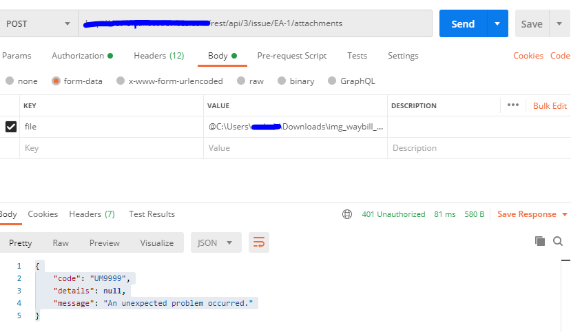 When i try to add document to issue by postman,