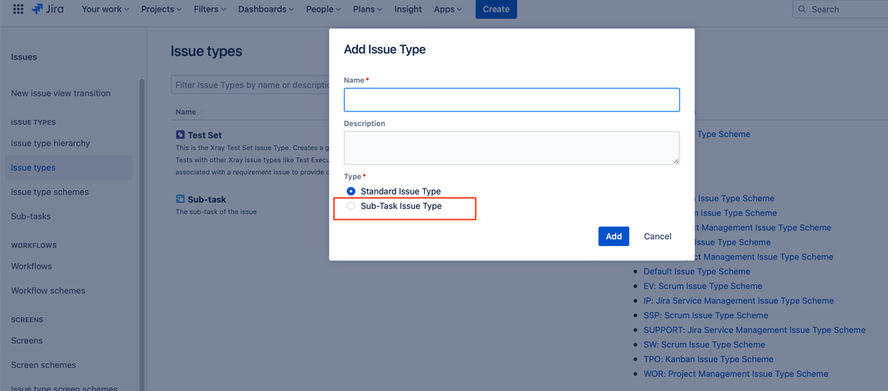 So you will need to create new issue types if you want different sub-tasks issues in your project.
