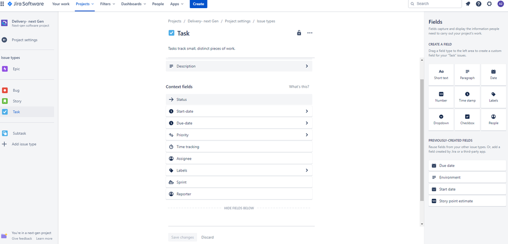 In the project settings, you can add fields to the project.