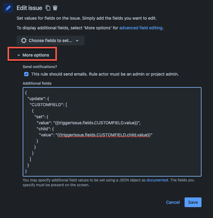 "value": "{{triggerIssue.fields.CUSTOMFIELD.child.value}}"