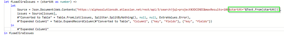 Maybe I should just explain my trouble at bit more. It turns out the original query miss the startAt parameter. It only sets the value leading to always loading the same 100 issues no matter what value startAt has. My version is below with the changed section in green box.