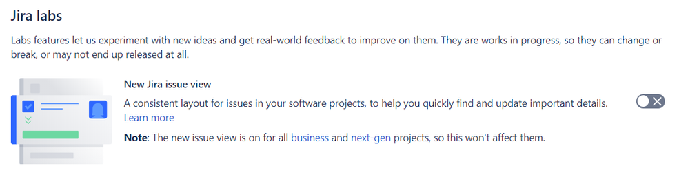 Scroll down to the bottom to the Jira Labs section and turn off the new view.