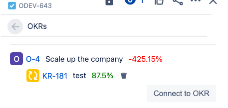 If you or anyone in a similar situation would like to connect their issues easily with OKRs and be able to view the OKR connected to the issue on the issue view, then having a dedicated OKR plugin could work.