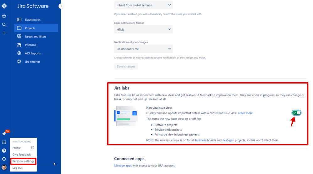 We also know you use a lot of fields in the Jira Software issue view. If the new view doesn't have exactly what you need for now, you can turn it off in your profile. To turn off this view: