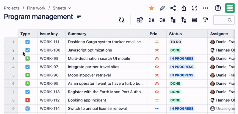 Every JXL sheet is powered by either a saved filter or a JQL statement, so you can easily use it as a "supercharged" alternative to the built-in filter views.