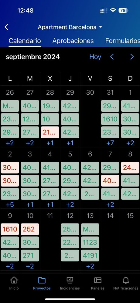 Hola Sam, si por supuesto mira, esta imagen (1) es cuando inicio y me encuentro con el calendario así donde yo se que hay incidencias en el día 16/10 y aquí no aparecen, en la foto 2 es cuando aprieto "hoy "y aparecen algunas mas pero no todas, si me voy a septiembre por ejemplo en la foto 3 aparecen mitad y otras no. y las fotos 4 y 5 representan el calendario desde la APP que si aparecen todas. Nos pasa a los 5 usuarios y comenzó a suceder de un día para el otro. Gracias por contestarme con tanta celeridad.
