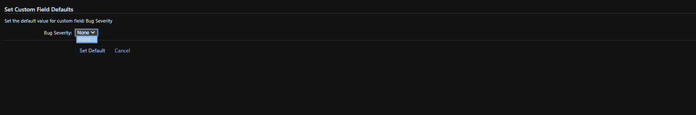 I have a global context set for the default configuration of Bug Severity that sets the default value to: Unassessed for all projects.