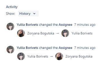 1. The simplest way to look for assignee changes is ticket history in the activity section. It looks like that: