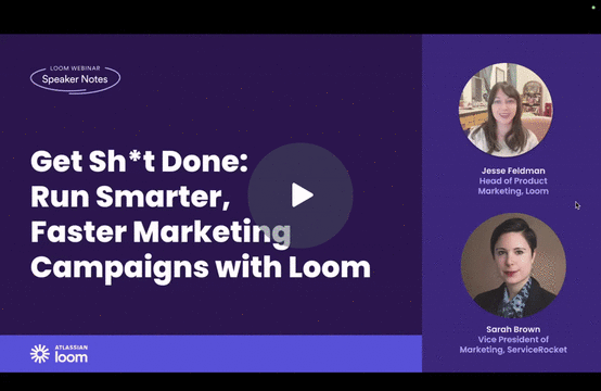That’s exactly why Jesse Feldman, Head of Product Marketing for Loom is teaming up with Sarah Brown, VP of Marketing at ServiceRocket, for a webinar: Get Sh*t Done: Run Smarter, Faster Marketing Campaigns with Loom.