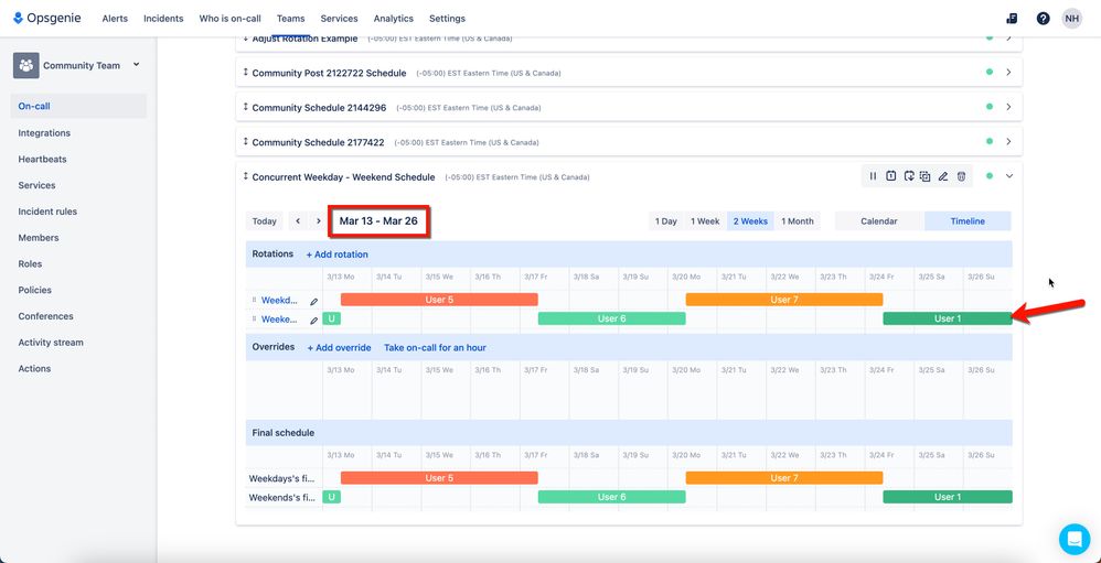 We have employee A through G and our on-call runs concurrently with the shifts starting on Monday at 9am and Friday at 9am. We have a rotation for the weekdays and one for the weekend, however I was wondering if it was possible to use the same Employee rotation for both? Employee A starts Monday at 9am, Employee B starts Friday at 9am, Employee C starts Monday at 9am, etc...