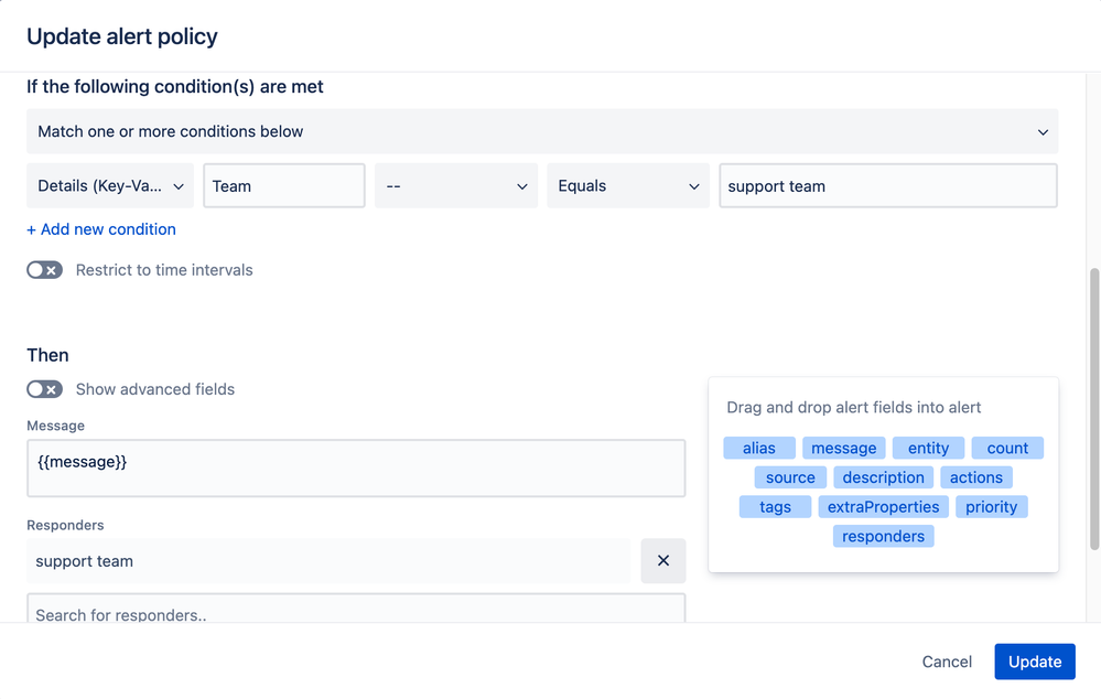 I am trying to create a Global Integration of type "Google Cloud's operations suite" (a.k.a. GoogleStackdriver) and auto-assign Responders in opsgenie based on policy labels in Google Cloud Monitoring (GCM). I added a policy label in GCM and am able to reference it in opsgenie's "Create Alert" rule with {{_payload.incident.policy_user_labels.opsgenie_team}} in some property fields, but the Responders field will not accept this.