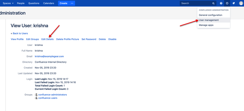 Login as Confluence admin , navigate to Cogwheel-> User management--> Users -->edit details .