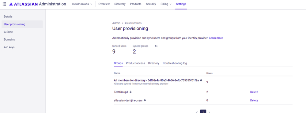 The 2 groups seen in the Atlassian admin page were created by me via the SCIM api, and those are not syncing with the matching groups in Gsuite either.