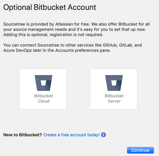 AFAIK bitbucket is optional when you use Sourcetree. Just click 'Continue' in the setup screen: