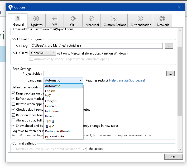 i want set SourceTree on Spanish. I´m using Windows 10. In the dropdown does´not appear the spanish language. it is supported on Windows?