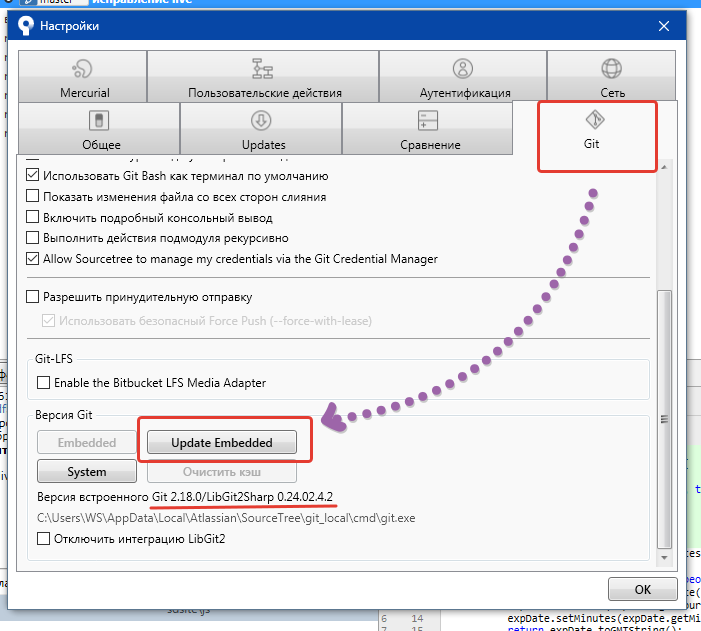 Update Embedded Git worked for me. I didn't understand any of the text but I DID understand the image. Thanks!