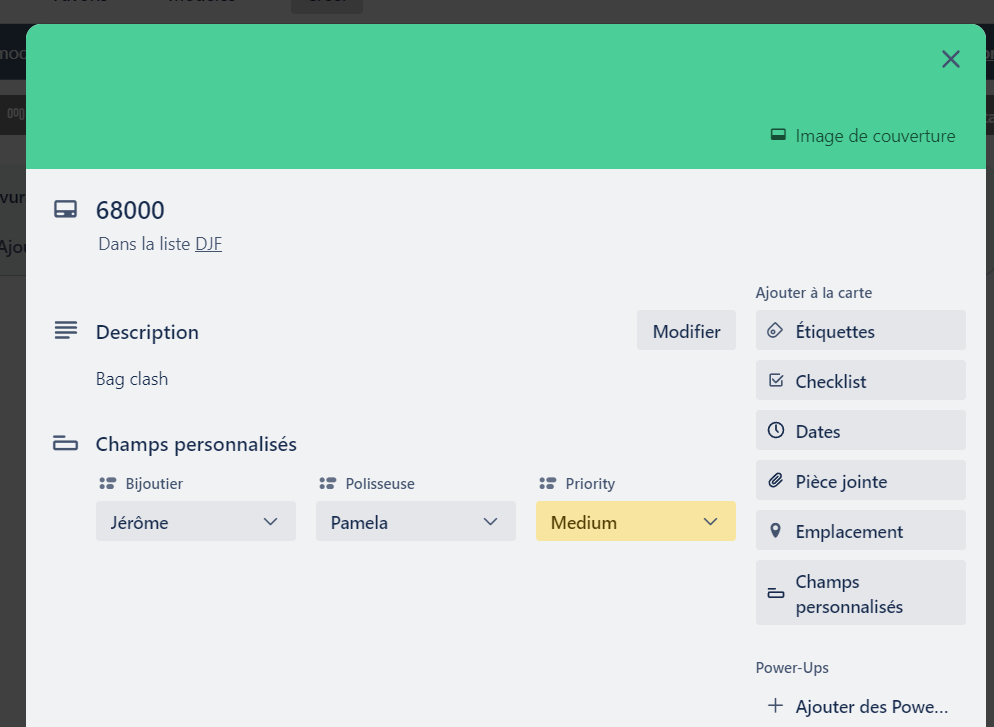 Dans mon exemple ci-dessous j'aimerai afficher les champs personnalisés sur la carte sans devoir l'ouvrir.