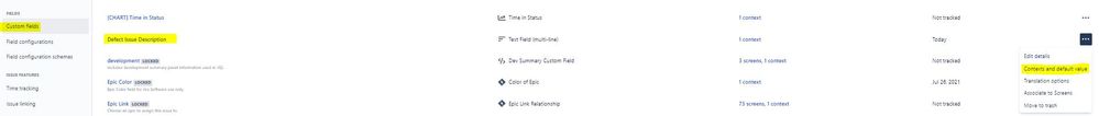 - Use the newly created fields "Contexts and default value" to add the default text you want to appear in the predefined field