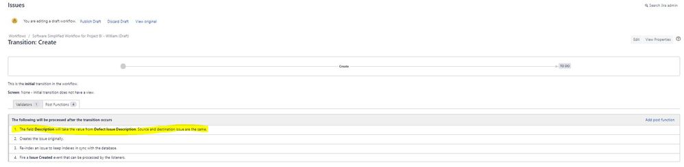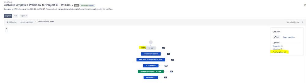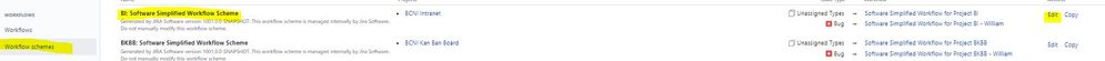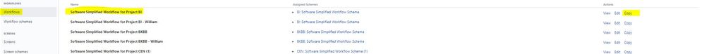 - Identify the "Software Simplified Workflow" that is used by the Jira project then copy and modify it