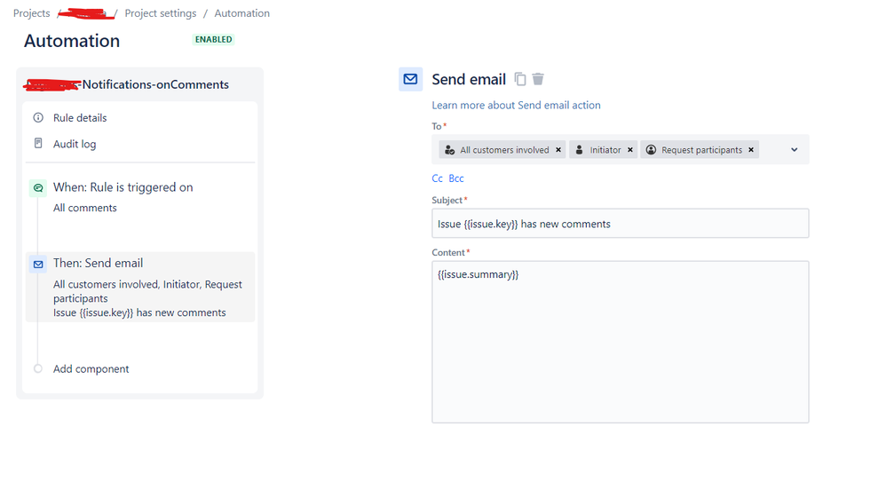 I create a automation and a custom rule yet nothing changed only the creator receives the email